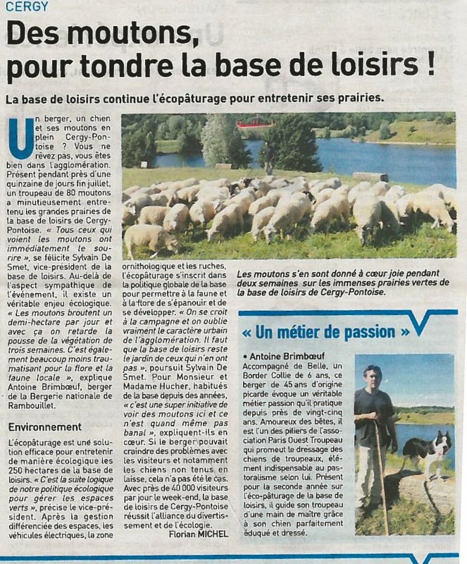 Des moutons à la base de loisirs de Cergy mercredi 14 août 2013, par Sylvain De Smet Pour la deuxième année consécutive, l’écopâturage sur la base de Cergy est un bonheur pour tout le monde. Sourire jusqu’aux oreilles pour ceux et celles qui les croisent...