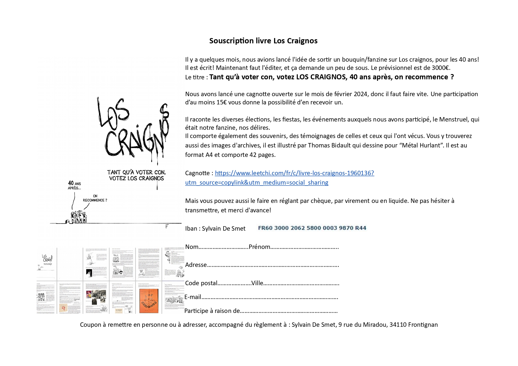 Il y a quelques mois, nous avions lancé l’idée de sortir un bouquin/fanzine sur Los craignos, pour les 40 ans ! C’est fait.