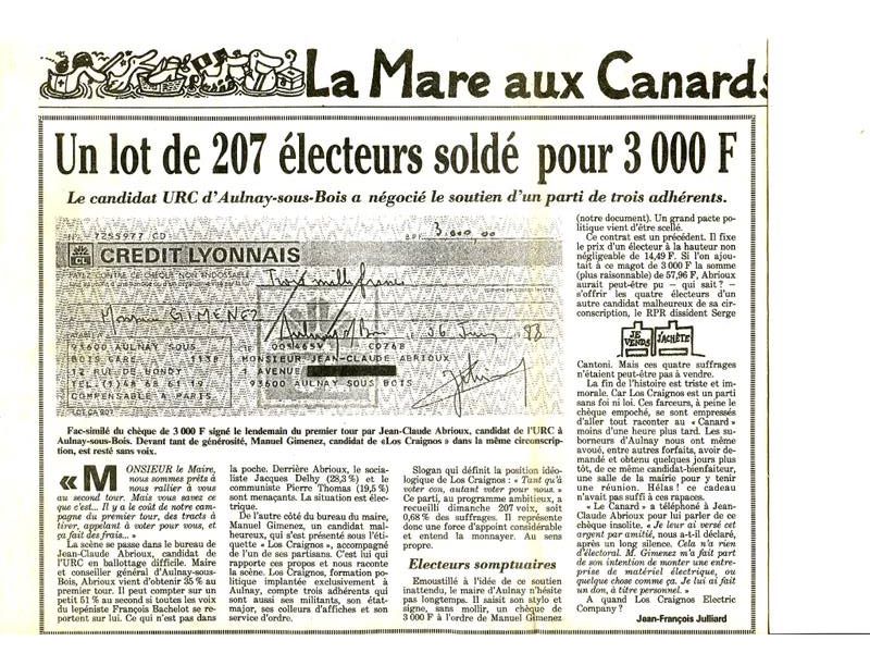 Los Craignos était fait pour permettre à celles et à ceux qui ne souhaitaient pas voter pour les partis existants, de le faire, un peu comme s’ils votaient blanc. Sachant qu’avec nos slogans du style "Tant qu’à voter con, votez pour nous", c’était plutôt délirant. Notre heure de gloire, ce fut en 1988, avec le coup du chèque....